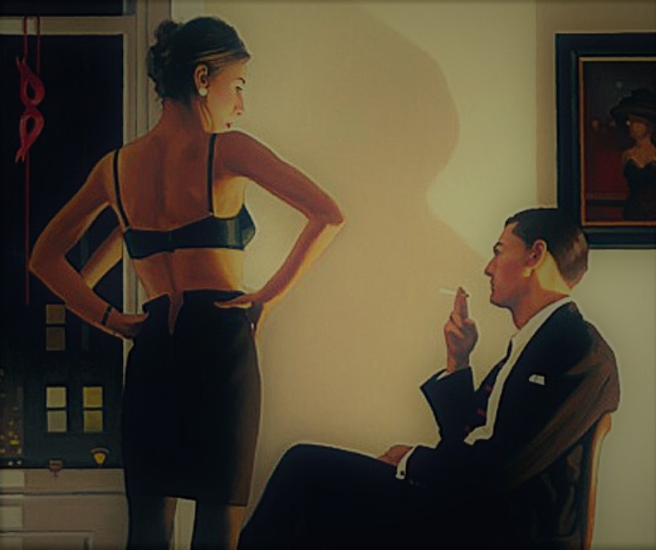 Il quadro ritrae due amanti che hanno appena terminato l’amplesso. Lui sta fumando una sigaretta, lei si chiede com’è possibile che lui sia ancora pettinato alla perfezione dopo tale scopata, ma reprime l’interrogativo e gli chiede se può chiuderle la gonna. Lui si rifiuta di toccarla causa poderoso periodo refrattario. Dopo tre bottiglie di vino rosso, sei shottini, otto birre e un Polase pe giocà la domanda che domina la mente di entrambi è di chi cazzo sia la casa. Anche perché nessuno dei due in casa propria attaccherebbe un quadro così brutto. La situazione è goffissima ed entrambi vogliono coprire l’imbarazzo. Iniziano a sentirsi male: mi sa che quel polase non era polase e sta facendo effetto. Lui vorrebbe alzarsi per andare in bagno ma da circa mezz’ora non si sente più gli alluci. Lei, preoccupata di fare una brutta figura, trattiene la pancia con il respiro e il vomito con la forza di volontà. Sta iniziando ad avere le allucinazioni. Qualcuno le chiede se può essere accompagnato in bagno ma non riesce a capire se è il suo amante o Padre Pio.